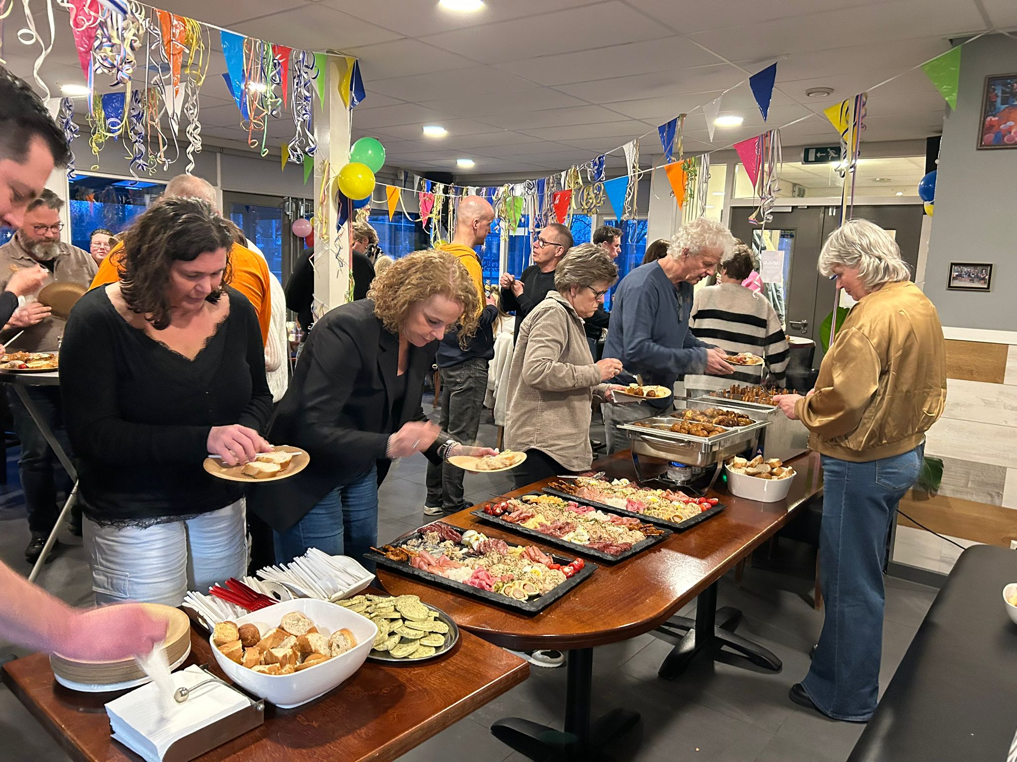 Als slotactiviteit hebben we dit jaar gekozen om iets binnen te organiseren, zodat het weer hierin nu eens geen rol kon spelen. We hebben een pubquiz georganiseerd, die was heel geslaagd. De vragen gingen o.a. over de ZTV, Zaltbommel, sport en muziek. Bij de muziekvragen werd uitbundig meegezongen. Het was grappig, gezellig en de uitslag per groep was verrassend. Elke deelnemer heeft een prijs ontvangen. De groep die als laatste was geëindigd had nog een leuke verrassing. Carnavalesk uitgedost hebben zij de polonaise ingezet. Daarna was er nog een heerlijk buffet waar iedereen goed van heeft gegeten.